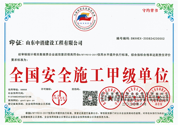 公司重視人才培養,秉承以人為本、和諧共享的發展方針。匯集了一批高水平高素質的工程專業管理人才,組建了一支實踐經驗豐富的工程技術專業隊伍,現有一級消防工程師10余人、二級注冊建造師20余人,高級工程師、工程師及助理工程師等30余人,經國家相關部門培訓合格的重點崗位專業技術人員50余人。目前已在濟南、青島、日照、濰坊、東營、德州、臨沂、淄博、菏澤、棗莊、滄州、新疆等地設二十余家分公司。